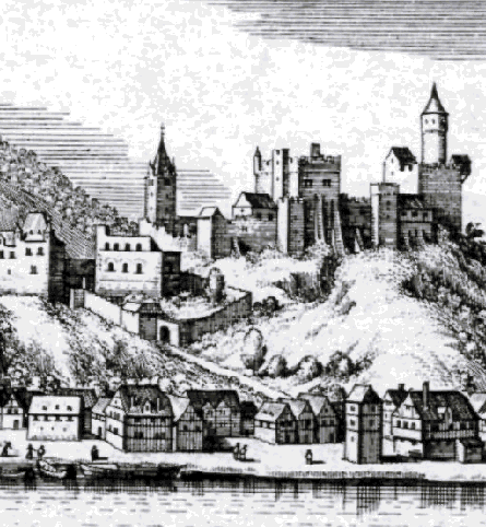 Der Bildausschnitt zeigt Saarburg im Jahre 1646 nach dem Kupferstich von Matthäus Merian aus der „Topographia Germaniae“. Das Bild ist entnommen: 1000 Jahre Saarburg 964-1964, Saarburg 1964, Abb. Nr. 2.- © Bad Kreuznach 2004 Nicht alle Copyright-Inhaber konnten ermittelt werden. Deren Urheberrechte werden hiermit vorsorglich und ausdrücklich anerkannt.